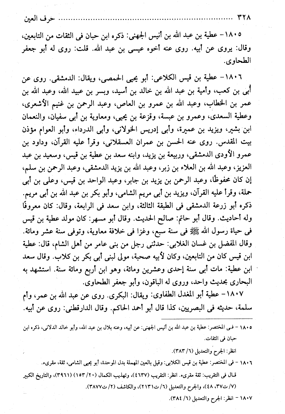 1806 - فى المختصر: عطية بن قيس الكلابى: وقيل بالعين المهملة بدل الموحدة، أبو يحيى الشامى، ثقة، مقرىء.