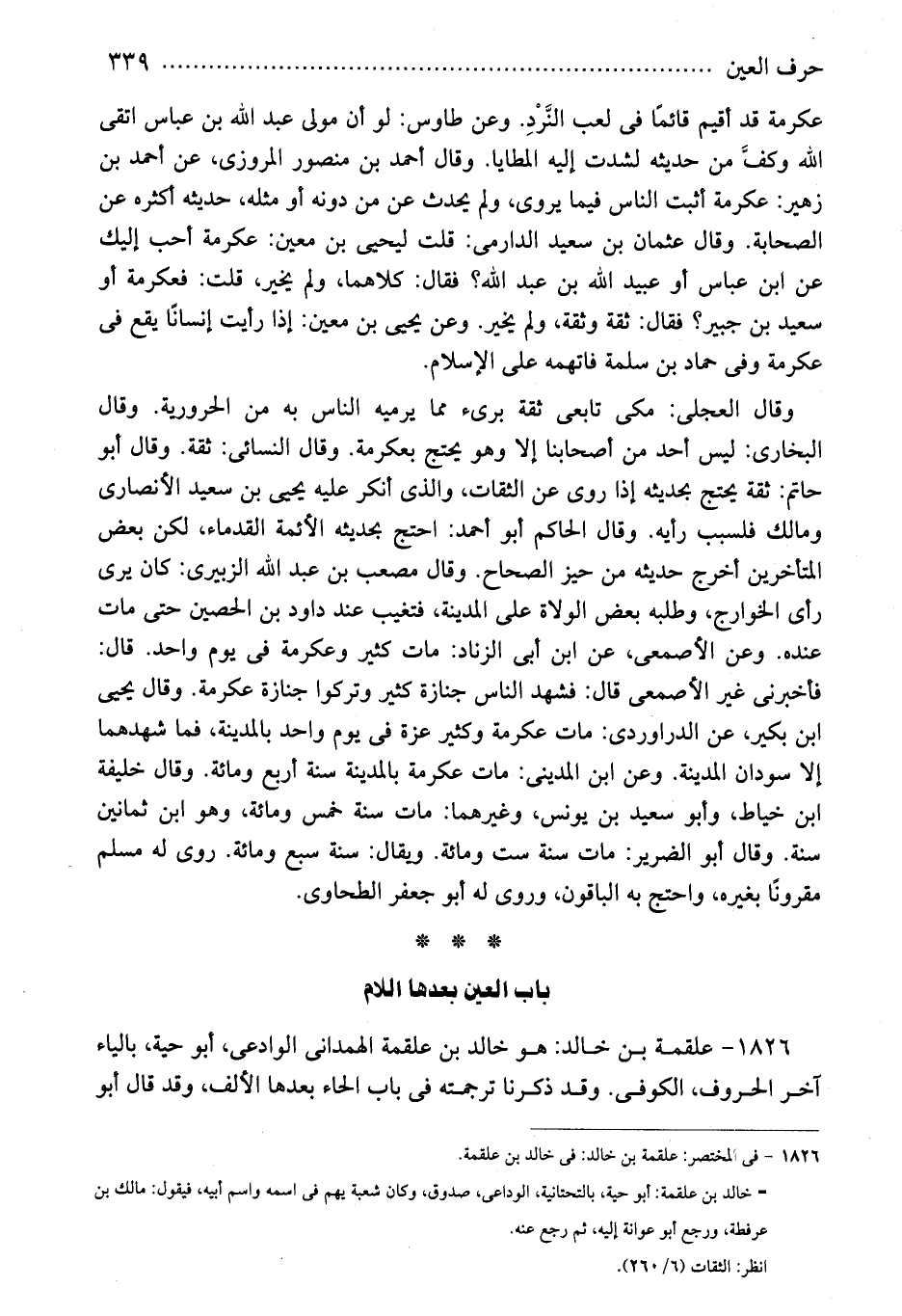 1826 - فى المختصر: علقمة بن خالد: فى خالد بن علقمة.