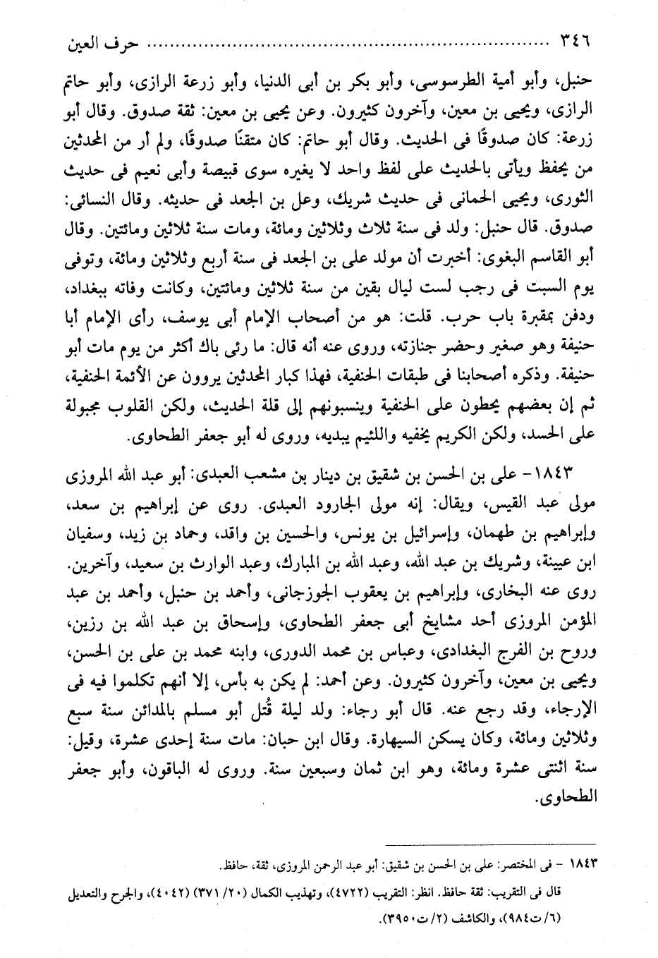 1843 - فى المختصر: على بن الحسن بن شقيق: أبو عبد الرحمن المروزى، ثقة، حافظ.
