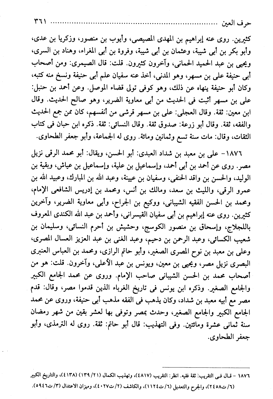 1876 - قال فى التقريب: ثقة فقيه. انظر: التقريب (4817) ، وتهذيب الكمال (21/139) (4138) ، والتاريخ الكبير (6/ت2458) ، والجرح والتعديل (6/ت1124) ، والكاشف (2/ت4027) ، وميزان الاعتدال (3/ت5946) .