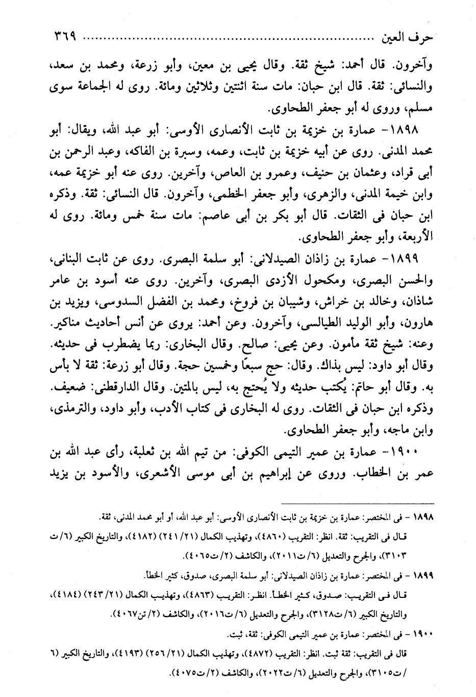 1898 - فى المختصر: عمارة بن خزيمة بن ثابت الأنصارى الأوسى: أبو عبد الله، أو أبو محمد المدنى، ثقة.