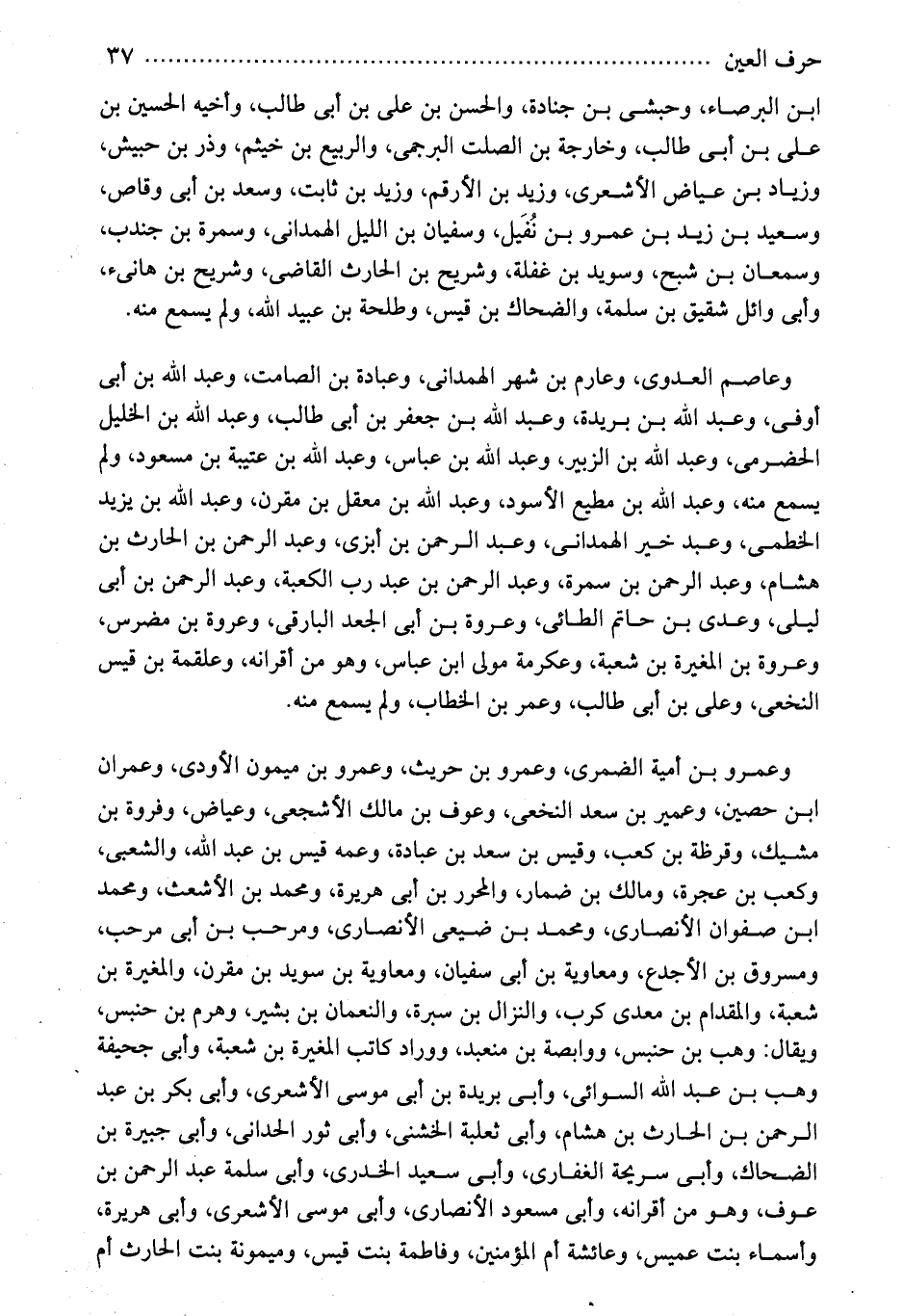 وعاصم العدوى، وعارم بن شهر الهمدانى، وعبادة بن الصامت، وعبد الله بن أبى أوفى، وعبد الله بن بريدة، وعبد الله بن جعفر بن أبى طالب، وعبد الله بن الخليل الحضرمى، وعبد الله بن الزبير، وعبد الله بن عباس، وعبد الله بن عتيبة بن مسعود، ولم يسمع منه، وعبد الله بن مطيع الأسود، وعبد الله بن معقل بن مقرن، وعبد الله بن يزيد الخطمى، وعبد خير الهمدانى، وعبد الرحمن بن أبزى، وعبد الرحمن بن الحارث بن هشام، وعبد الرحمن بن سمرة، وعبد الرحمن بن عبد رب الكعبة، وعبد الرحمن بن أبى ليلى، وعدى بن حاتم الطائى، وعروة بن أبى الجعد البارقى، وعروة بن مضرس، وعروة بن المغيرة بن شعبة، وعكرمة مولى ابن عباس، وهو من أقرانه، وعلقمة بن قيس النخعى، وعلى بن أبى طالب، وعمر بن الخطاب، ولم يسمع منه.