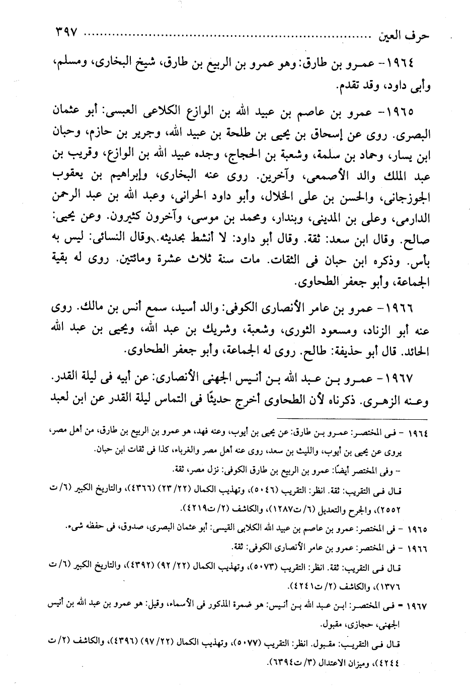 1965 - فى المختصر: عمرو بن عاصم بن عبيد الله الكلابى القيسى: أبو عثمان البصرى، صدوق، فى حفظه شىء.