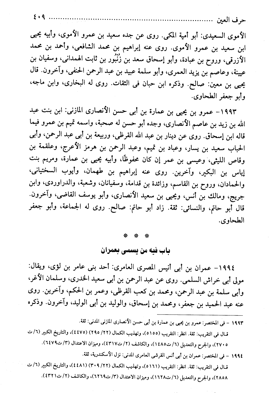 1993 - فى المختصر: عمرو بن يحيى بن عمارة بن أبى حسن الأنصارى المازنى المدنى: ثقة.