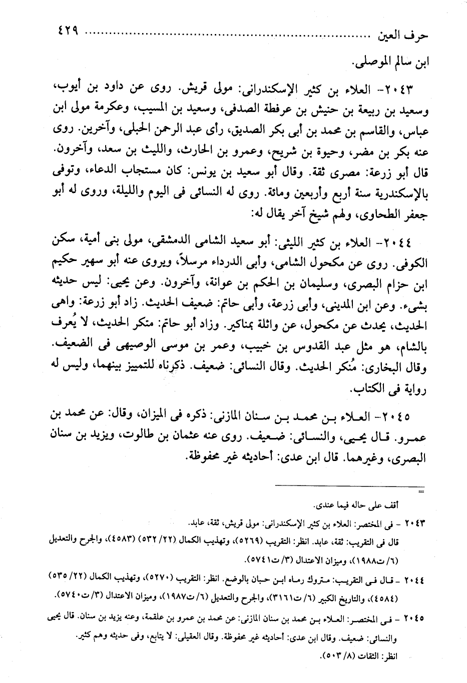 2043 - فى المختصر: العلاء بن كثير الأسكندرانى: مولى قريش، ثقة، عابد.