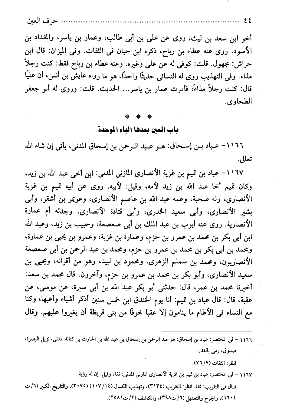 1167 - فى المختصر: عباد بن تميم بن غزية الأنصارى المازنى المدنى: ثقة، وقيل: إن له رؤية.