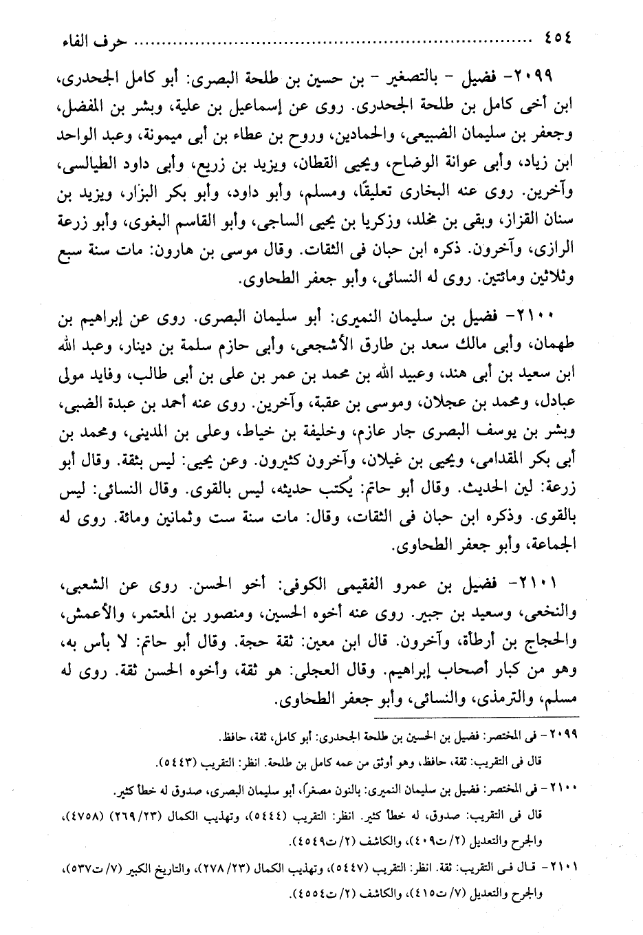 2099 - فى المختصر: فضيل بن الحسين بن طلحة الجحدرى: أبو كامل، ثقة، حافظ.