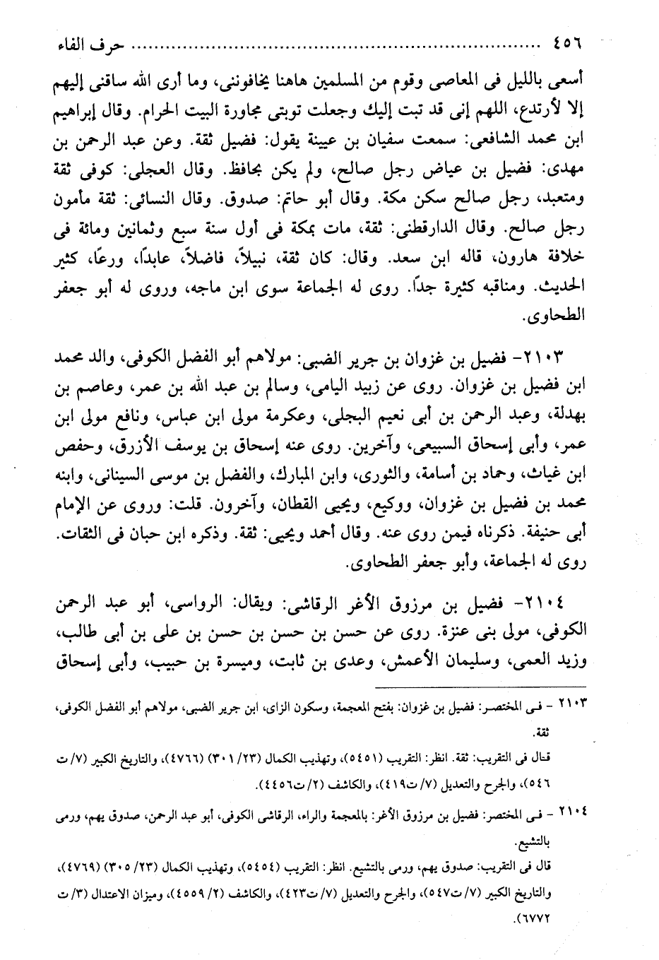 2104 - فى المختصر: فضيل بن مرزوق الأغر: بالمعجمة والراء، الرقاشى الكوفى، أبو عبد الرحمن، صدوق يهم، ورمى بالتشيع.
