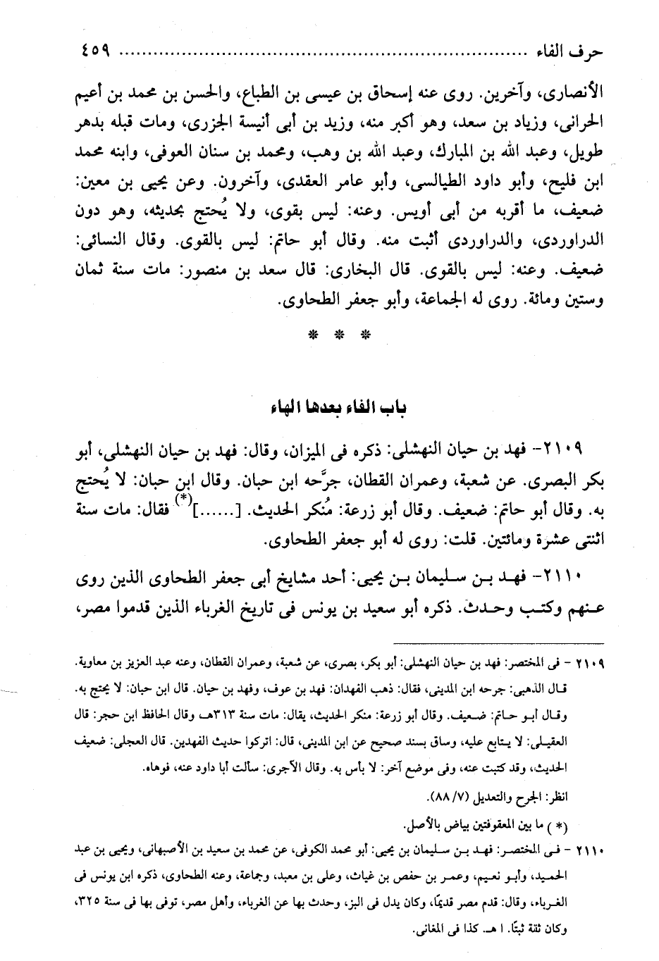 2110 - فهد بن سليمان بن يحيى: أحد مشايخ أبى جعفر الطحاوى الذين روى عنهم وكتب وحدث. ذكره أبو سعيد بن يونس فى تاريخ الغرباء الذين قدموا مصر،