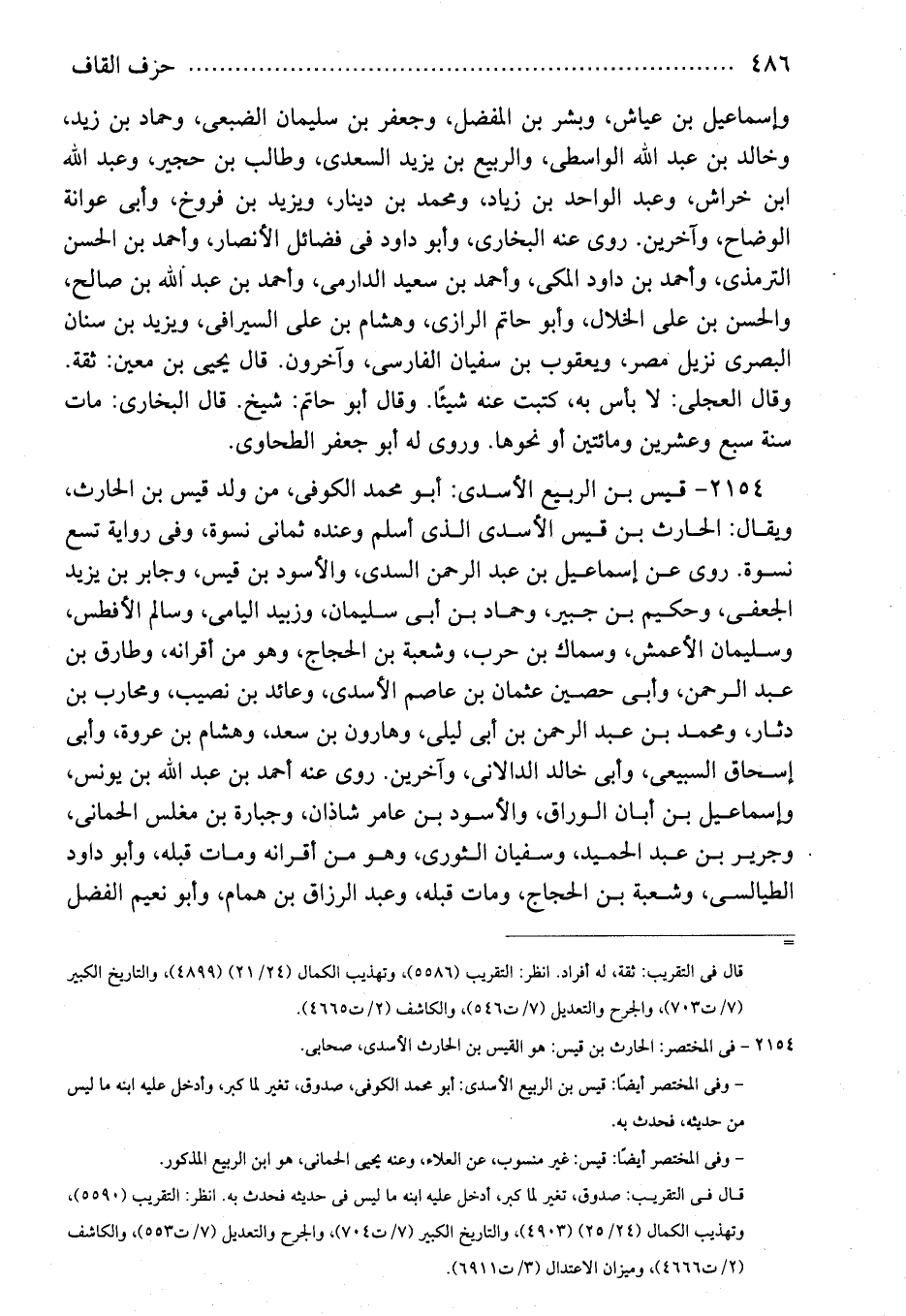 2154 - فى المختصر: الحارث بن قيس: هو القيس بن الحارث الأسدى، صحابى.
