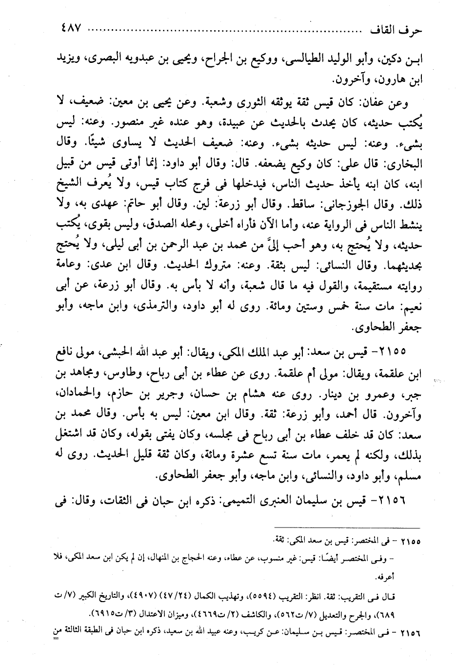 2156 - قيس بن سليمان العنبرى التميمى: ذكره ابن حبان فى الثقات، وقال: فى