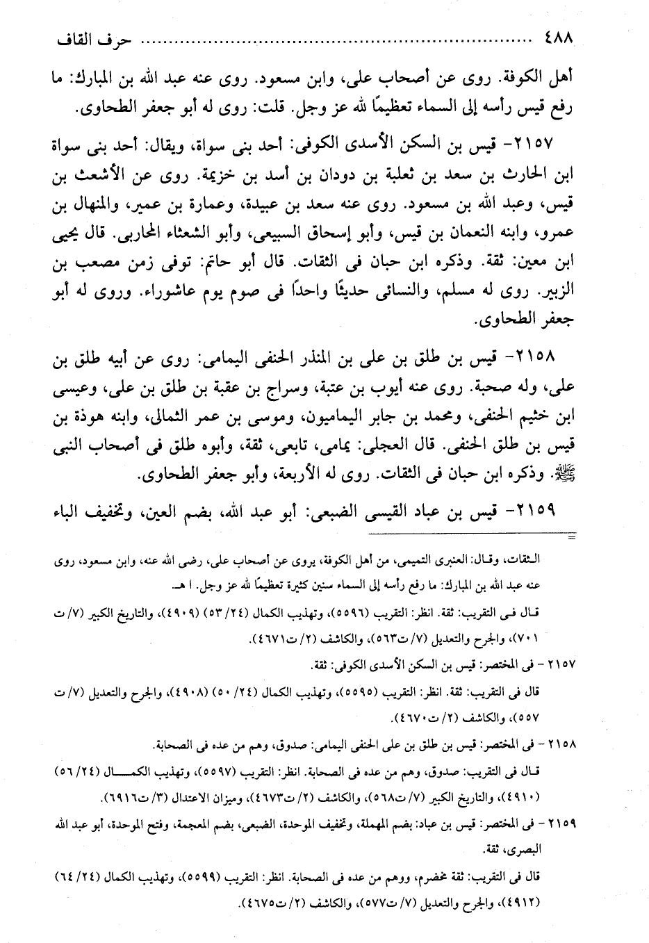 2159 - فى المختصر: قيس بن عباد: بضم المهملة، وتخفيف الموحدة، الضبعى، بضم المعجمة، وفتح الموحدة، أبو عبد الله البصرى، ثقة.
