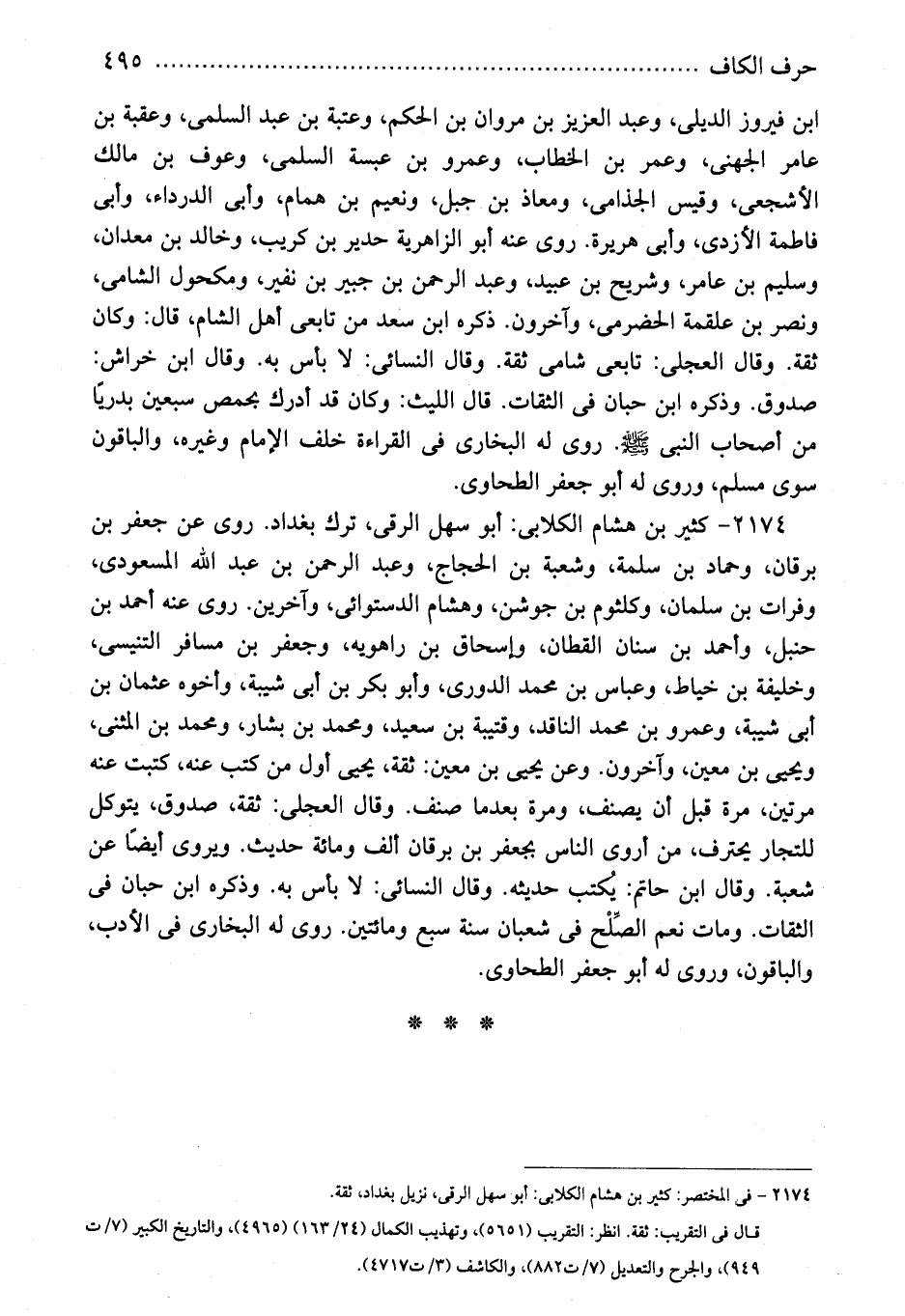 2174 - فى المختصر: كثير بن هشام الكلابى: أبو سهل الرقى، نزيل بغداد، ثقة.