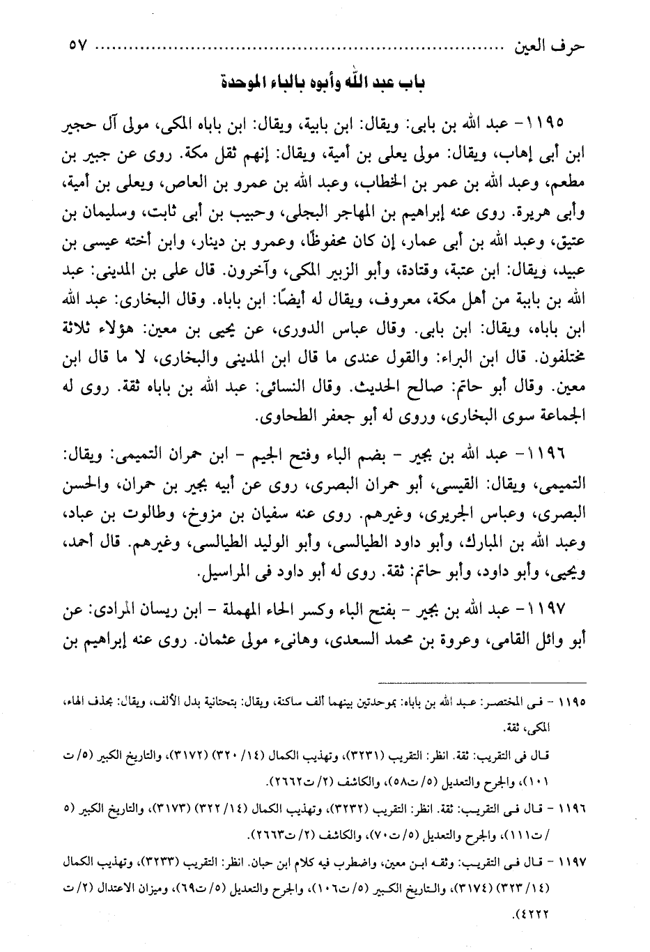 1195 - فى المختصر: عبد الله بن باباه: بموحدتين بينهما ألف ساكنة، ويقال: بتحتانية بدل الألف، ويقال: بحذف الهاء، المكى، ثقة. =