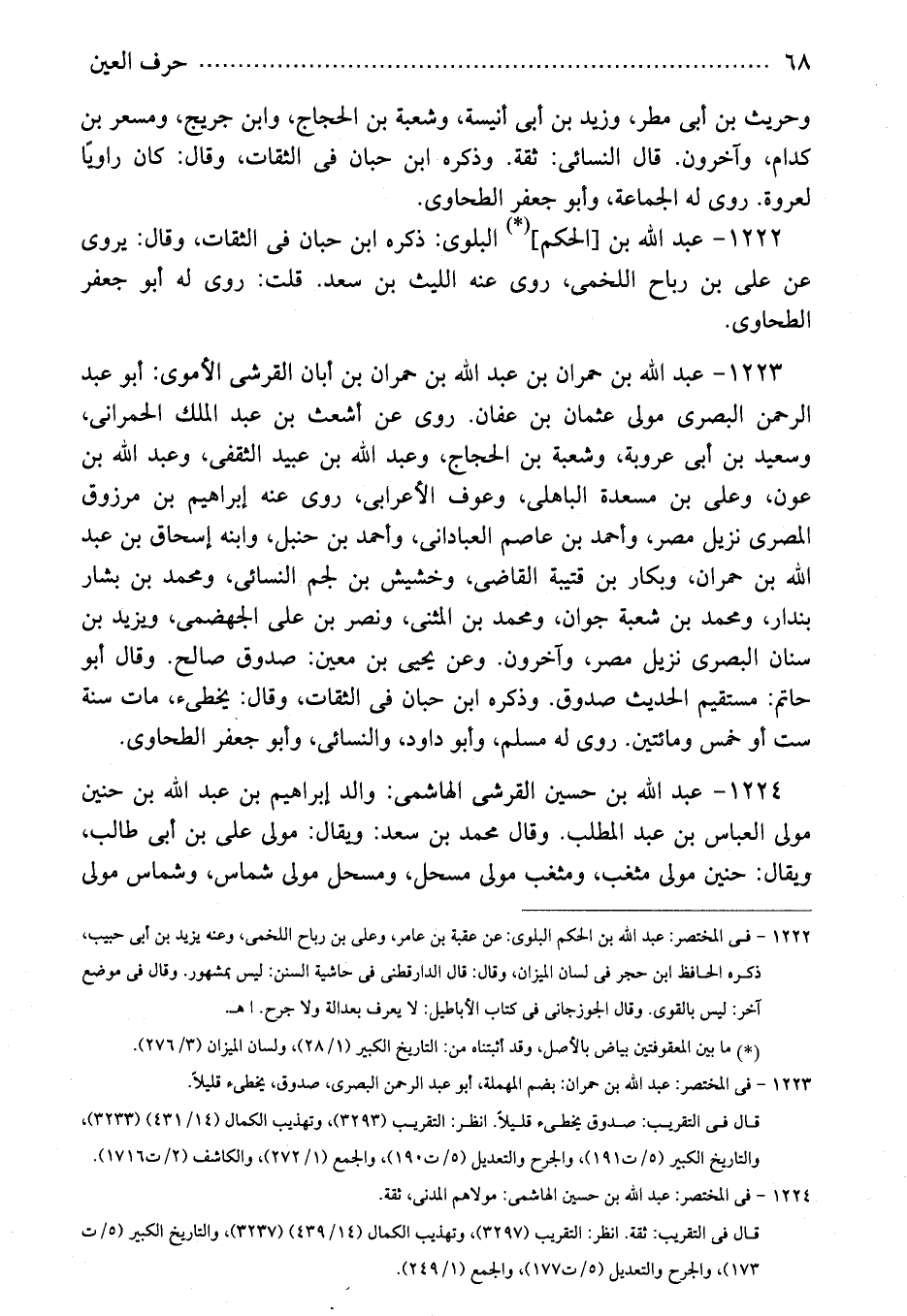 1223 - فى المختصر: عبد الله بن حمران: بضم المهملة، أبو عبد الرحمن البصرى، صدوق، يخطىء قليلاً.
