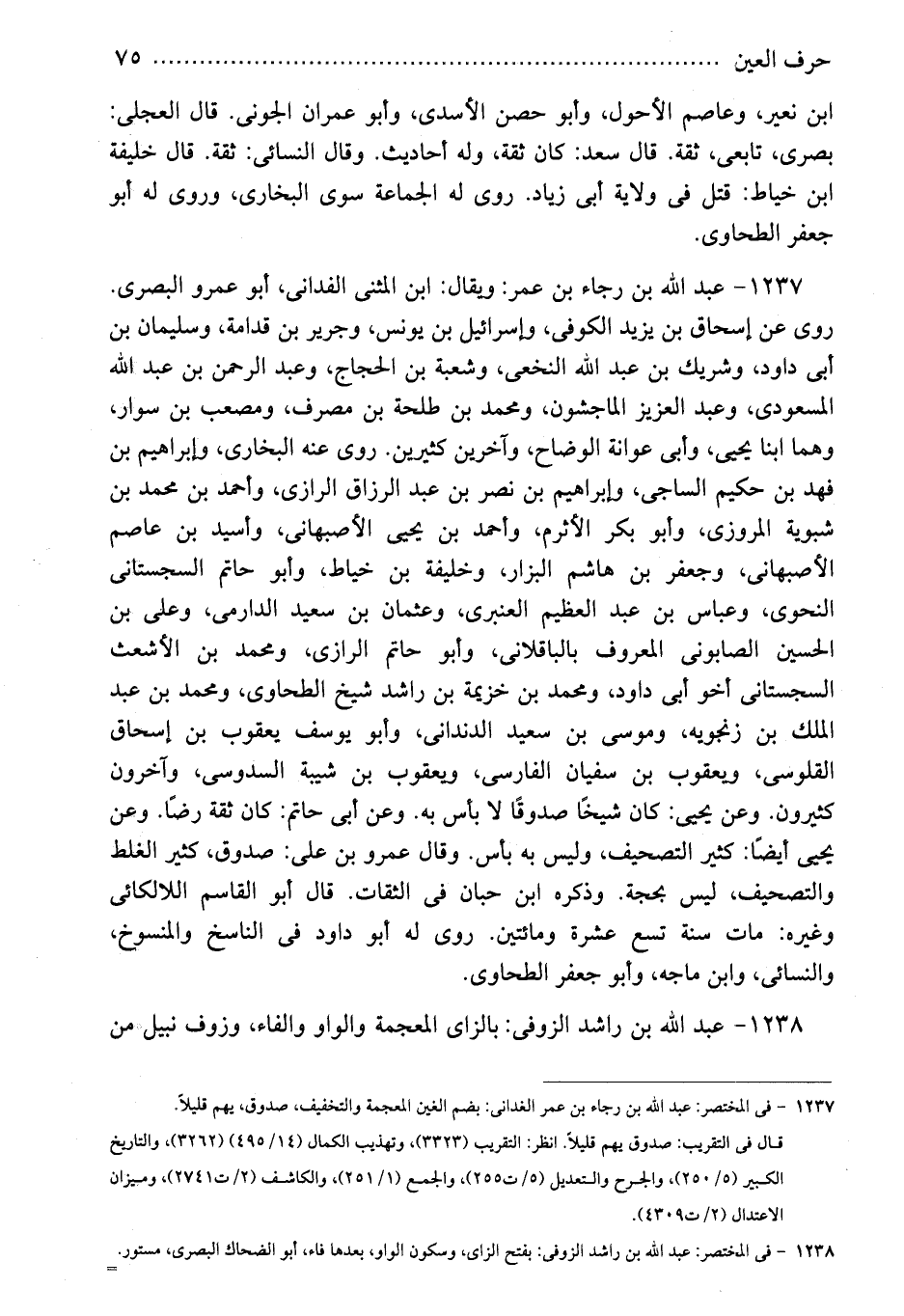 1238 - فى المختصر: عبد الله بن راشد الزوفى: بفتح الزاء، وسكون الواو، بعدها فاء، أبو الضحاك البصرى، مستور.
