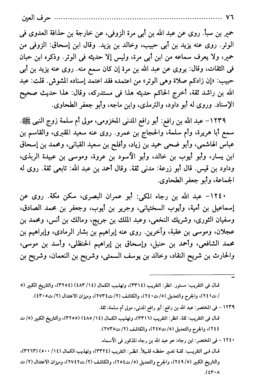 1239 - فى المختصر: عبد الله بن رافع: أبو رافع المدنى، مولى أم سلمة، ثقة. =