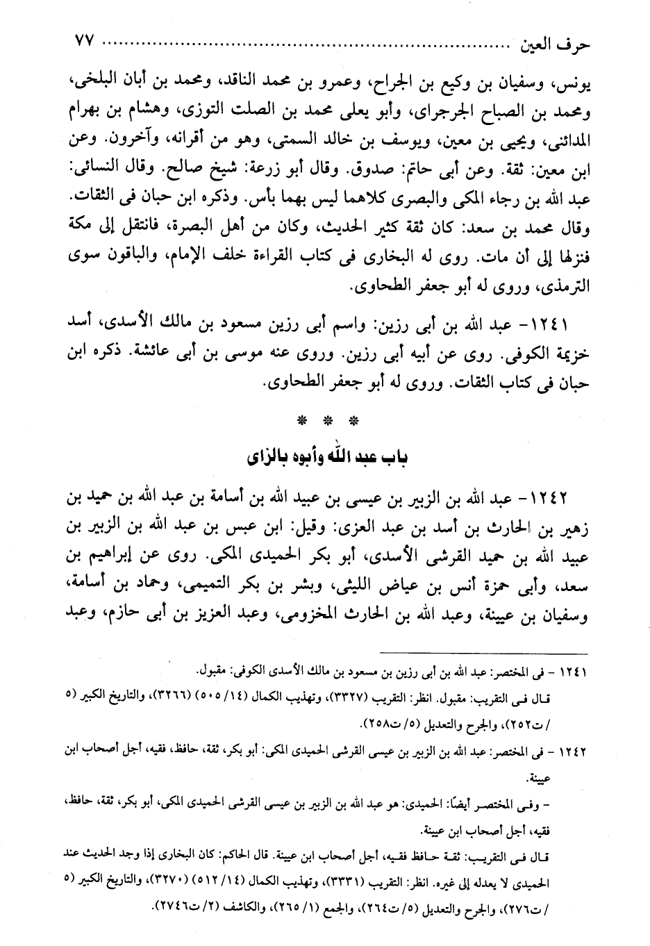 1242 - فى المختصر: عبد الله بن الزبير بن عيسى القرشى الحميدى المكى: أبو بكر، ثقة، حافظ، فقيه، أجل أصحاب ابن عيينة.