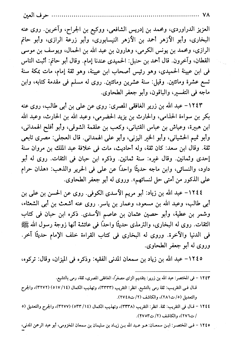 1243 - فى المختصر: عبد الله بن زرير: بتقديم الزاء مصغرًا، الغافقى المصرى، ثقة، رمى بالتشيع.