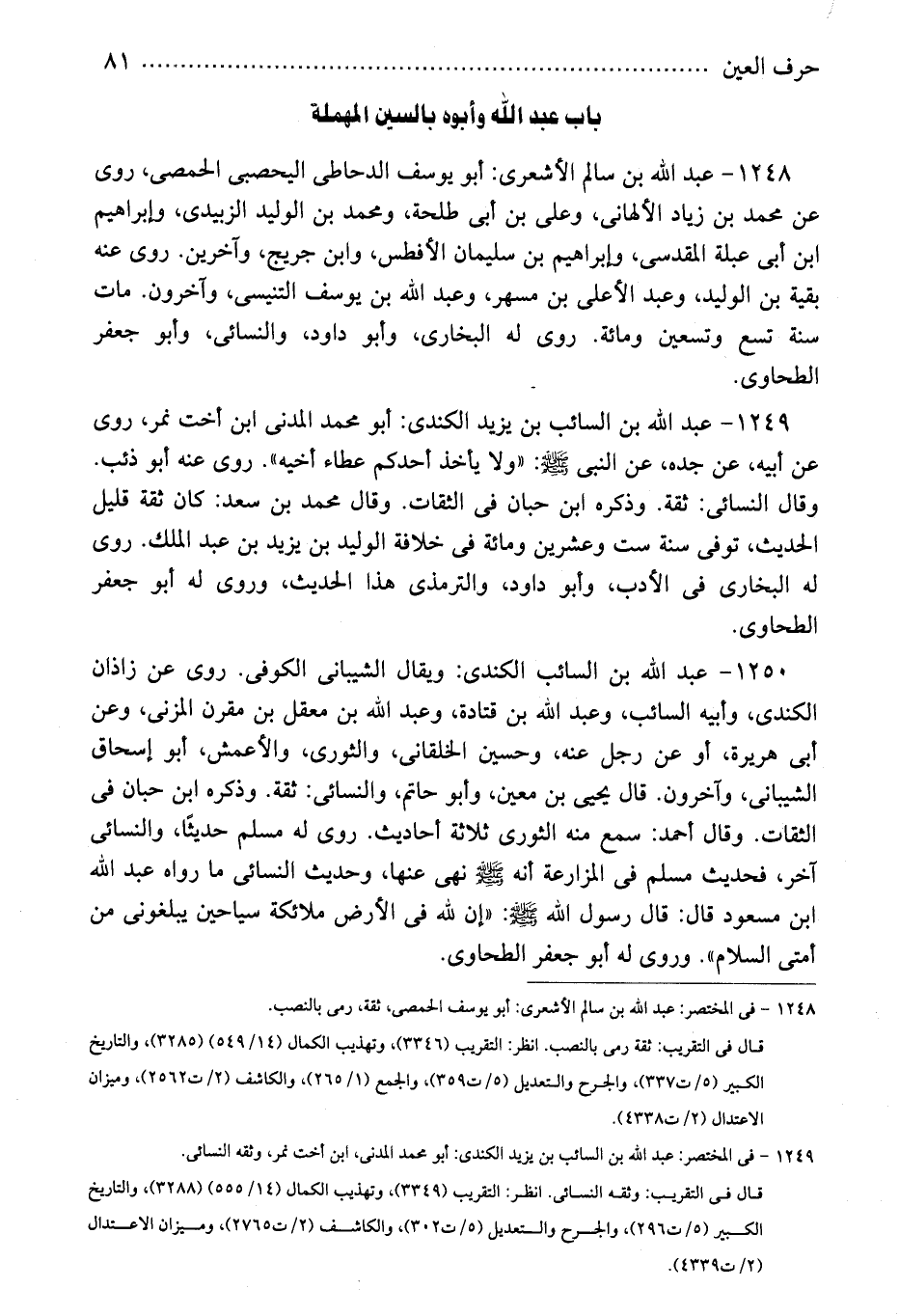 1248 - فى المختصر: عبد الله بن سالم الأشعرى: أبو يوسف الحمصى، ثقة، رمى بالنصب.