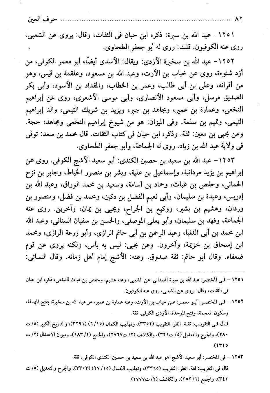1251 - فى المختصر: عبد الله بن سبرة الهمدانى: عن الشعبى، وعنه هشيم، وحفص بن غياث النخعى، ذكره ابن حبان فى الثقات، وقال: يروى عن الشعبى، روى عنه الكوفيون.