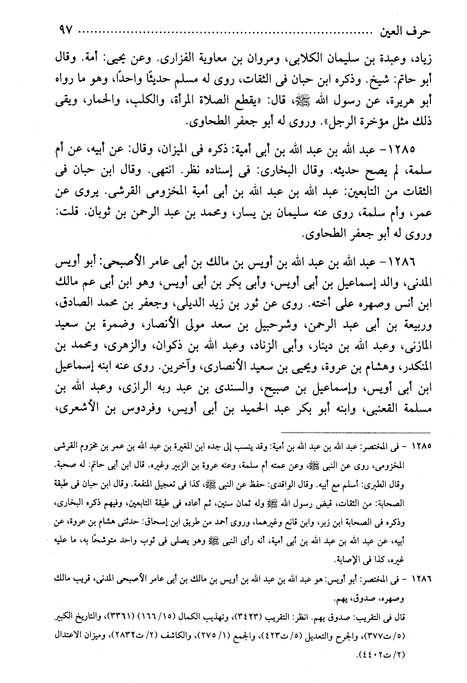 1286 - فى المختصر: أبو أويس: هو عبد الله بن عبد الله بن أويس بن مالك بن أبى عامر الأصبحى المدنى، قريب مالك وصهره، صدوق، يهم.