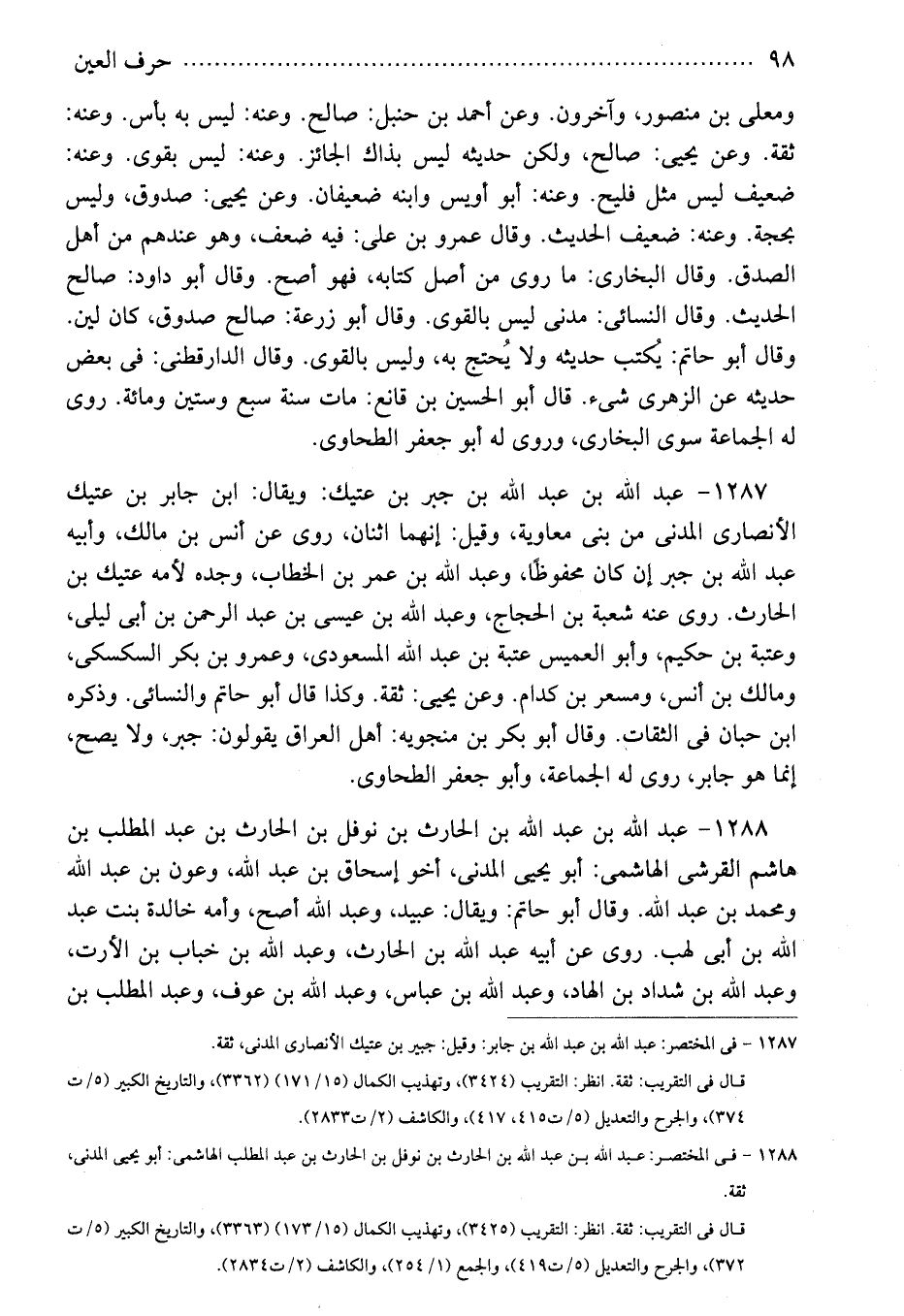 1287 - فى المختصر: عبد الله بن عبد الله بن جابر: وقيل: جبير بن عتيك الأنصارى المدنى، ثقة.