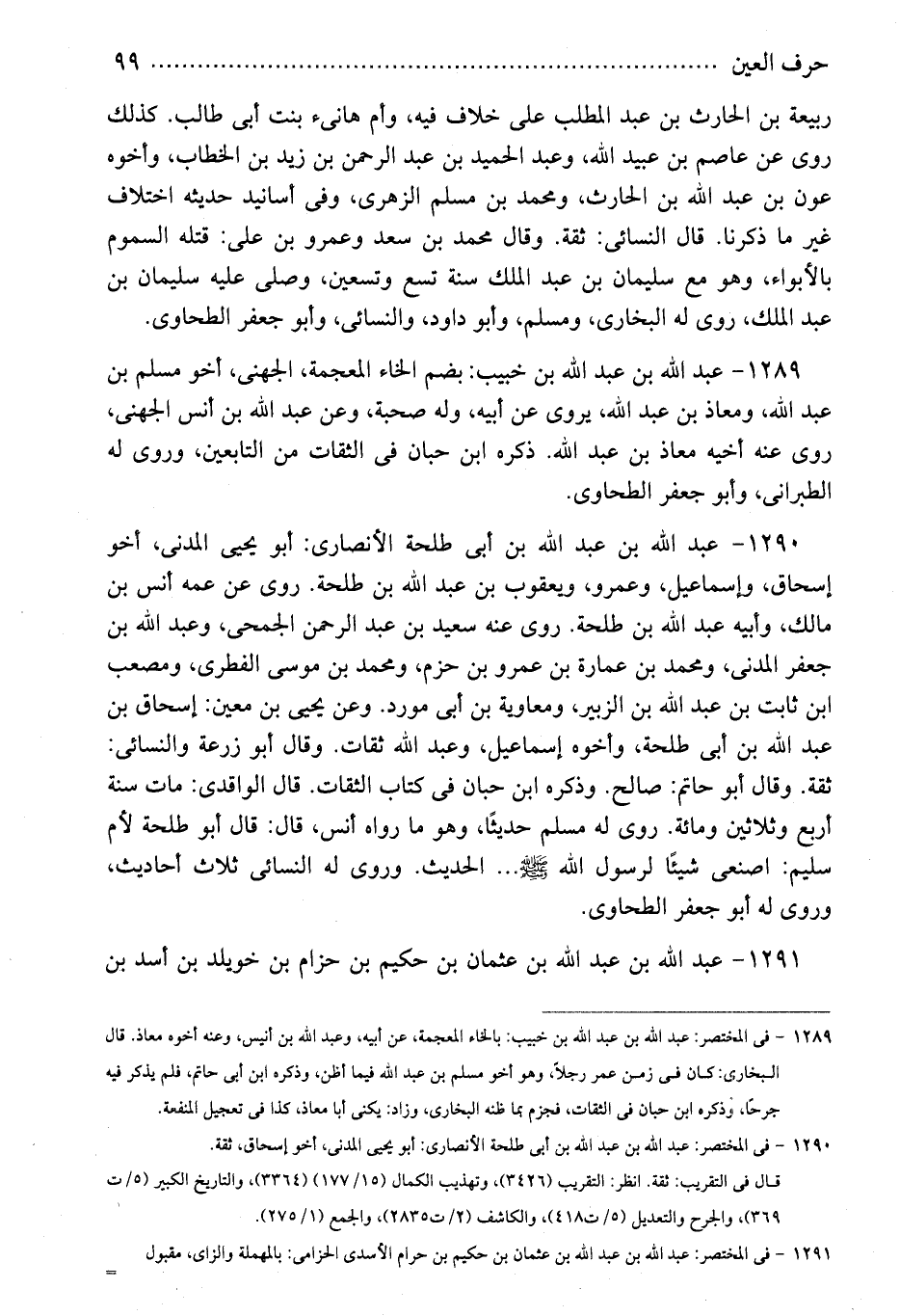 1291 - فى المختصر: عبد الله بن عبد الله بن عثمان بن حكيم بن حرام الأسدى الحزامى: بالمهملة والزاء، مقبول