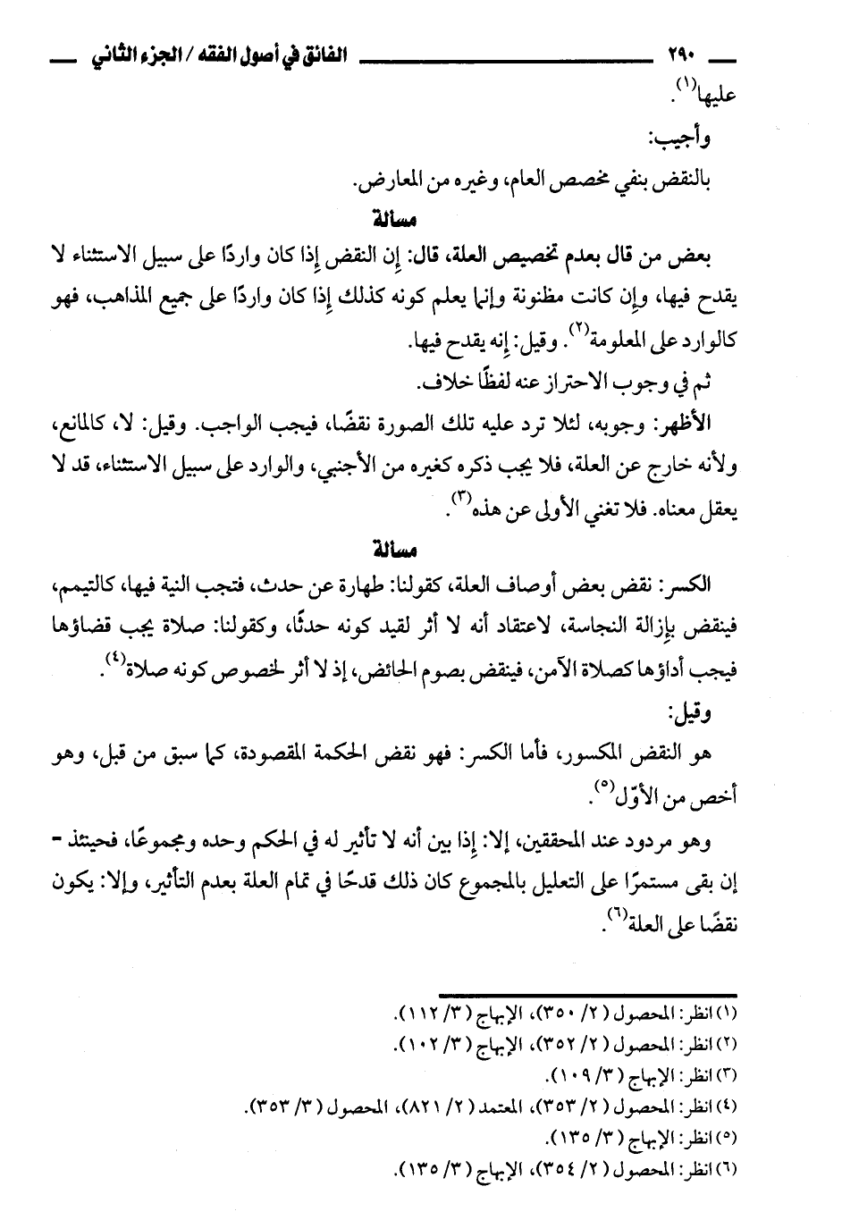 بعض من قال بعدم تخصيص العلة، قال: إن النقض إذا كان واردا على سبيل الاستثناء لا يقدح فيها، وإن كانت مظنونة وإنما يعلم كونه كذلك إذا كان واردا على جميع المذاهب، فهو كالوارد على المعلومة. وقيل: إنه يقدح فيها.
