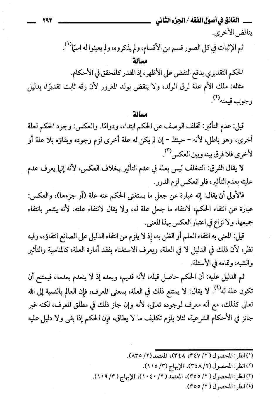 مثاله: ملك الأم علة لرق الولد، ولا ينقض بولد المغرور لان رقه ثابت تقديرا، بدليل وجوب قيمته.