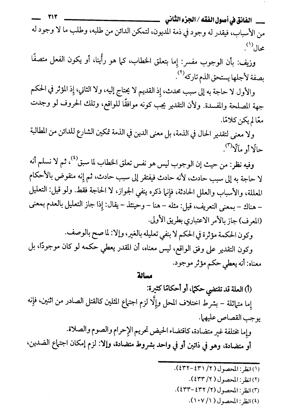 والأول لا حاجة به إلى سبب محدث، إذ القديم لا يحتاج إليه، ولا الثاني، إذ المؤثر في الحكم جهة المصلحة والمفسدة. لأن التقدير يجب كونه موافقا للواقع، وتلك الحروف لو وجدت معا لم يكن كلاما.