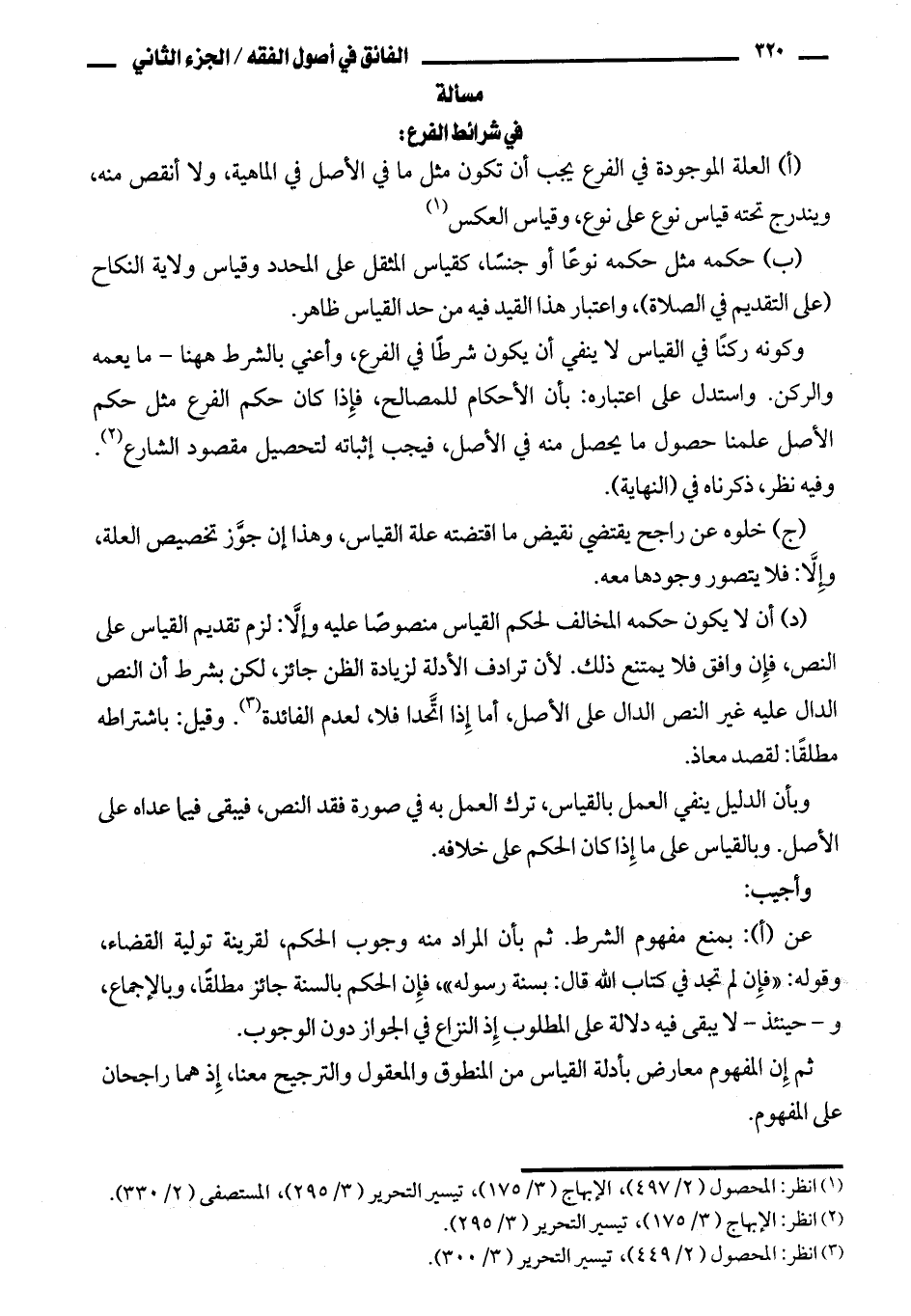 (أ) العلة الموجودة في الفرع يجب أن تكون مثل ما في الأصل في الماهية، ولا أنقض منه، ويندرج تحته قياس نوع على نوع، وقياس العكس.