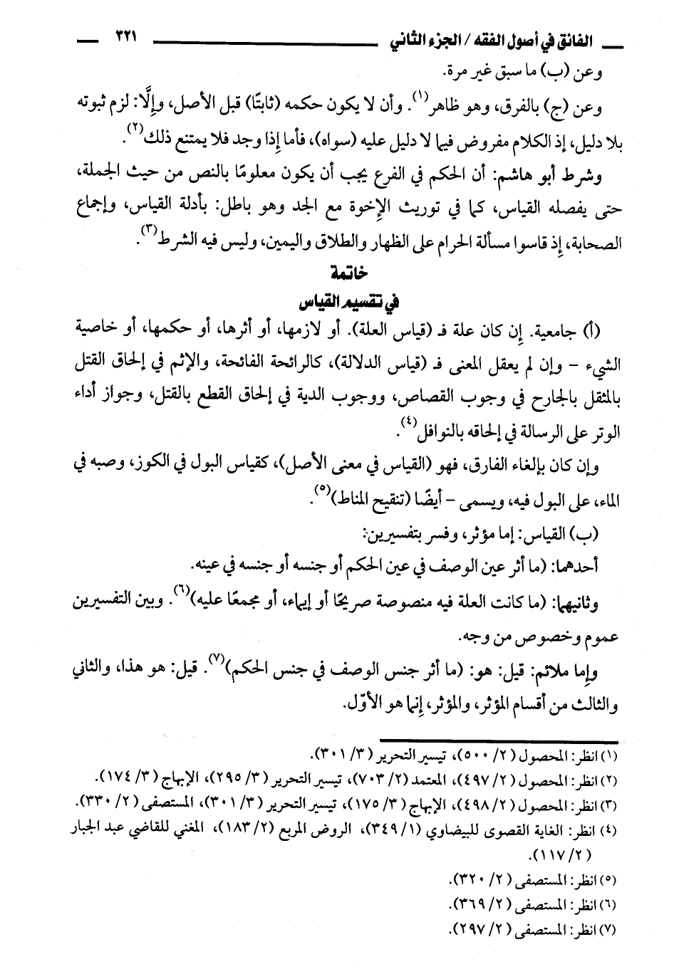 (ب) القياس: إما مؤثر، وفسر بتفسيرين: