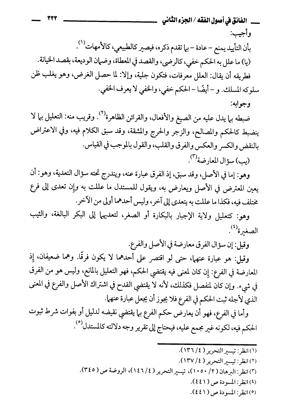 ضبطه بما يدل عليه من الصيغ والأفعال، والقرائن الظاهرة. وقريب منه: التعليل بما لا ينضبط كالحكم والمصالح، والزجر والحرج والمشقة، وقد سبق الكلام فيه، وفي الاعتراض بالنقض والكسر والعكس والفرق والقلب، والقول بالموجب في القياس.