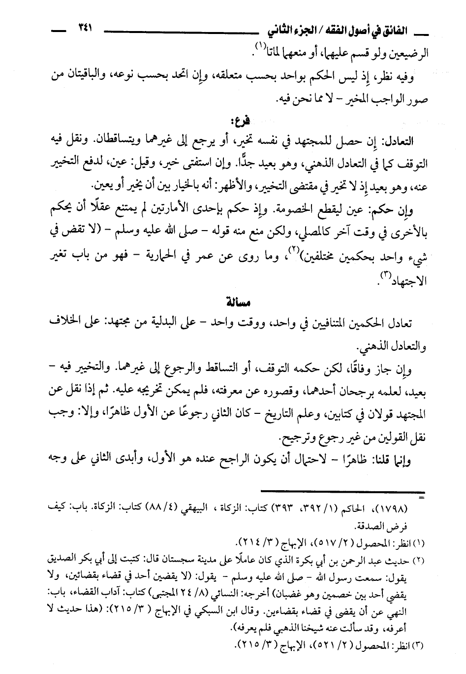 وإن حكم: عين ليقطع الخصومة. وإذ حكم بإحدى الأمارتين لم يمتنع عقلا أن يحكم بالأخرى في وقت آخر كالمصلي، ولكن منع منه قوله - صلى الله عليه وسلم - (لا تقض شيء واحد بحكمين مختلفين)، وما روى عن عمر في الحمارية - فهو من باب تغير الاجتهاد.