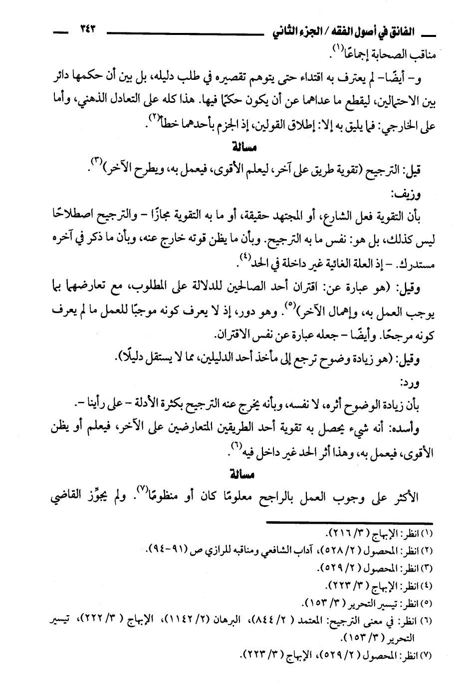 قيل: الترجيح (تقوية طريق على آخر، ليعلم الأقوى، فيعمل به، ويطرح الآخر).