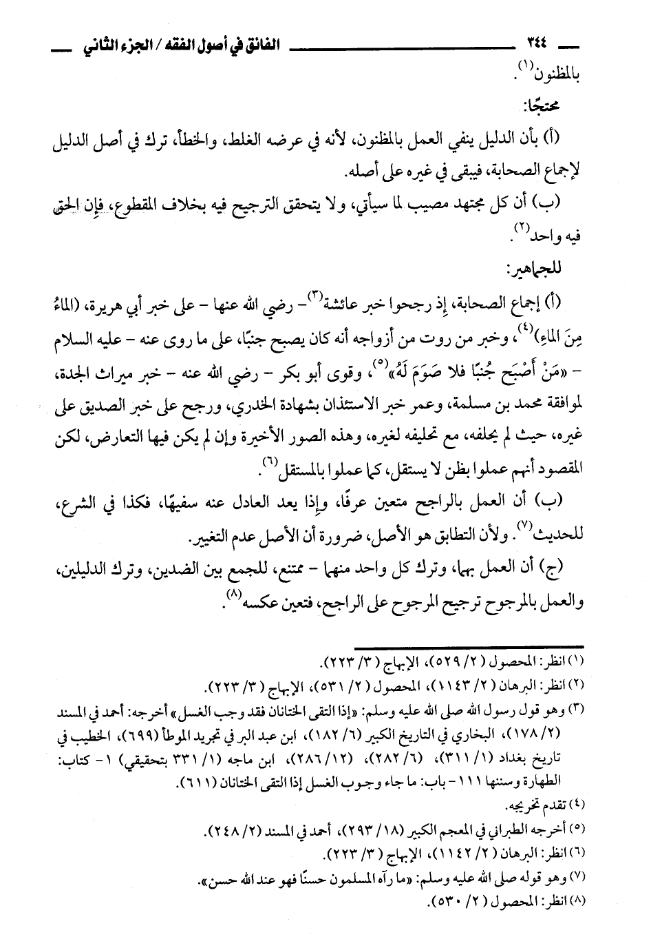 (ب) أن العمل بالراجح متعين عرفا، وإذا يعد العادل عنه سفيها، فكذا في الشرع، للحديث. ولأن التطابق هو الأصل، ضرورة أن الأصل عدم التغيير.