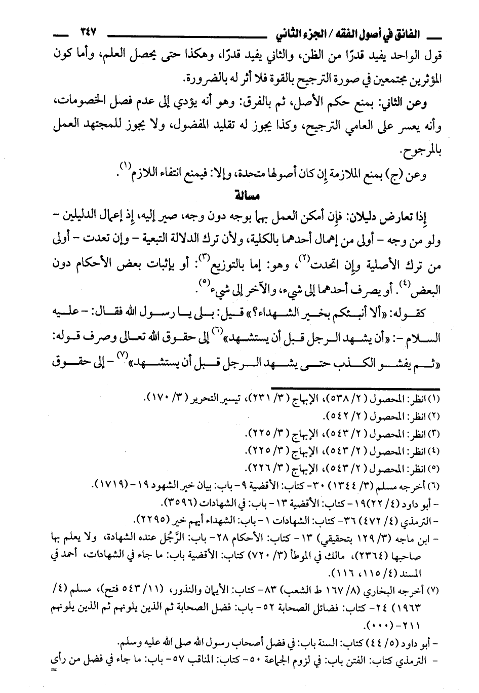 كقوله: "ألا أنبئكم بخبر الشهداء؟ " قيل: بلى يا رسول الله فقال: - عليه السلام -: "أن يشهد الرجل قبل يستشهد" إلى حقوق الله تعالى وصرف قوله: "ثم يفشو الكذب حتى يشهد الرجل قبل أن يستشهد" - إلى حقوق