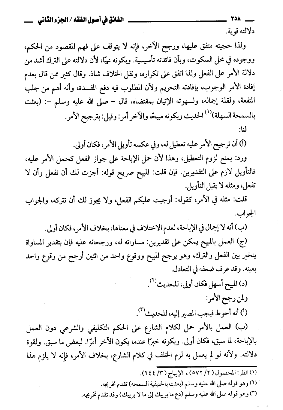 (أ) أن ترجيح الأمر عليه تعطيل له، وفي عكسه تأويل الأمر، فكان أولى.