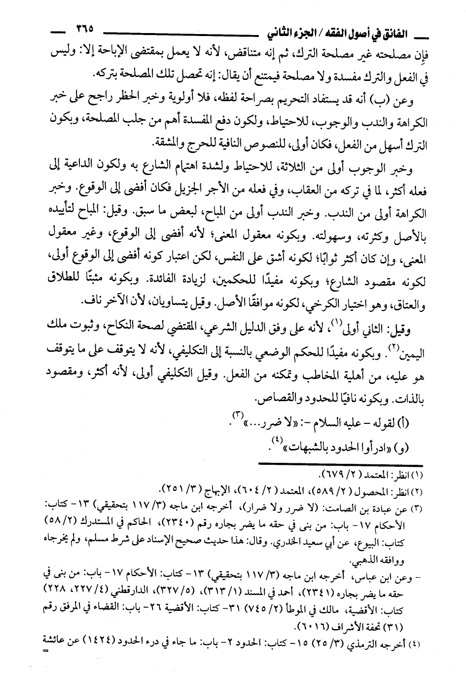 (أ) لقوله - عليه السلام -: "لا ضرر ... ".