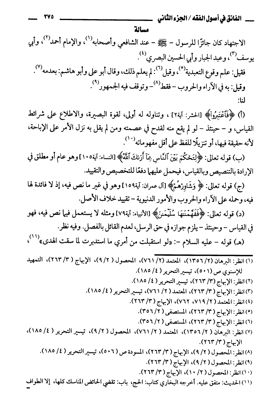 الاجتهاد كان جائزا للرسول - صلى الله عليه وسلم - عند الشافعي وأصحابه، والإمام أحمد، وأبي يوسف، وعبد الجبار وأبي الحسين البصري.