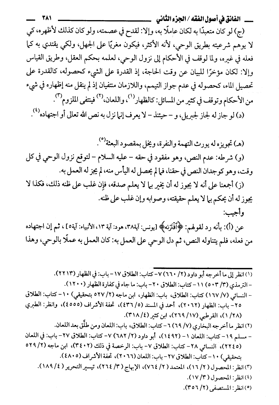 (د) لو جاز له جاز لجبريل، و - حينئذ - لا يعرف إنما نزل به نص الله تعالى أو اجتهاده.