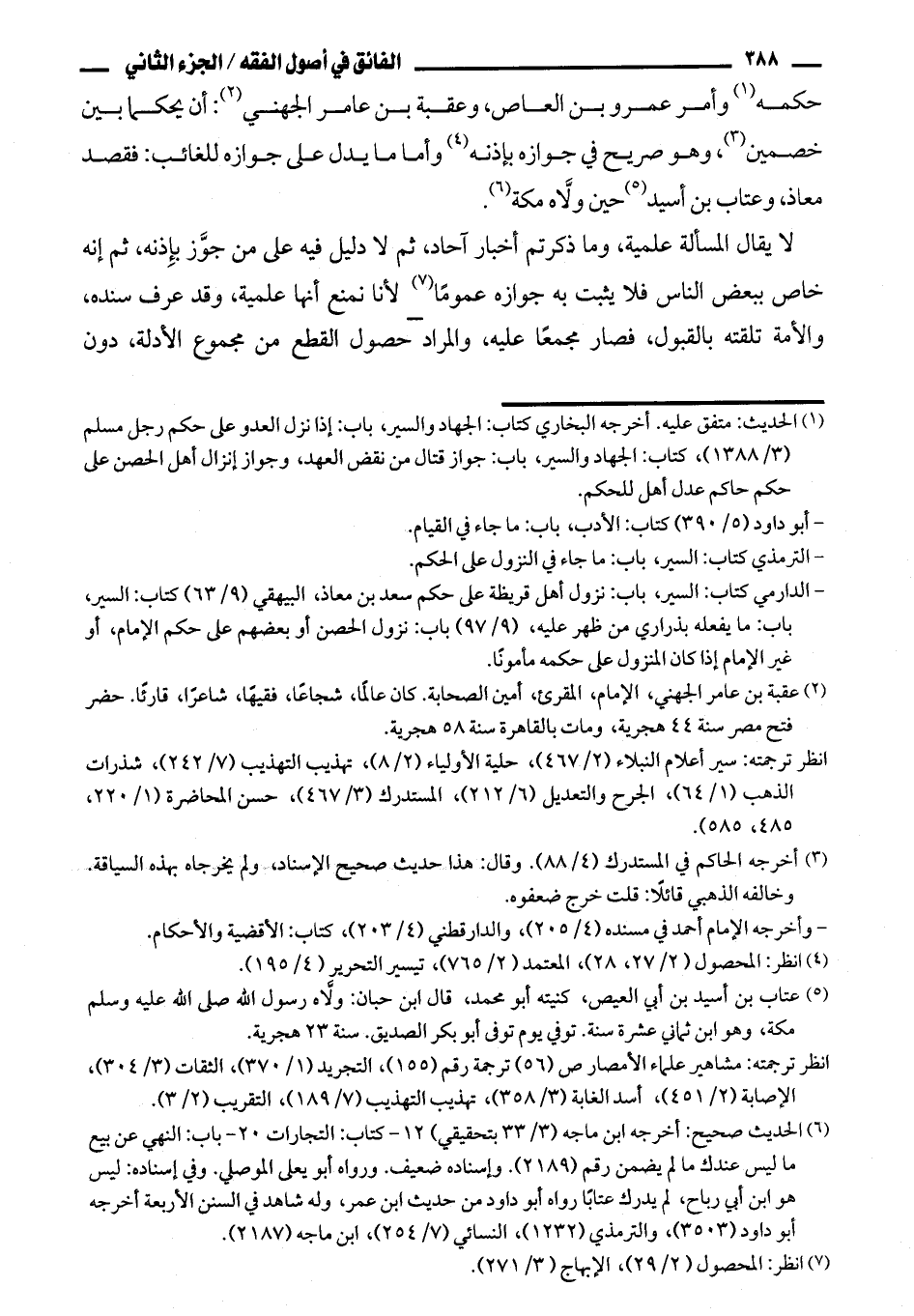 حكمه وأمر عمرو بن العاص، وعقبة بن عامر الجهني: أن يحكما بين خصمين، وهو صريح في جوازه بإذنه وأما ما يدل على جوازه للغائب: فقصد معاذ، وعتاب بن أسيد حين ولاه مكة.