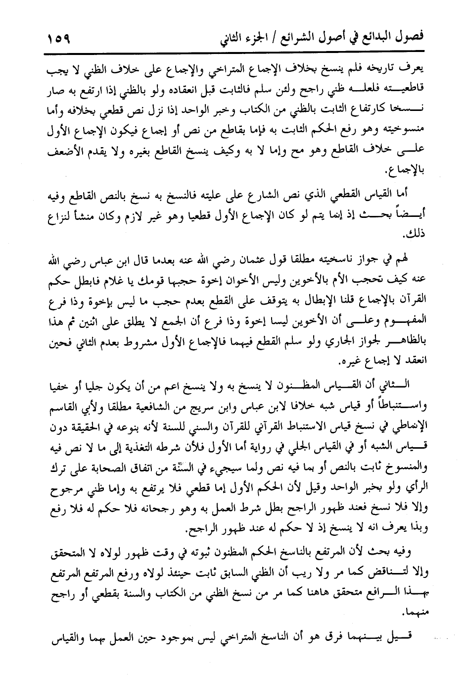 الثاني أن القياس المظنون لا ينسخ به ولا ينسخ أعم من أن يكون جليا أو خفيا واستنباطًا أو قياس شبه خلافا لابن عباس وابن سريج من الشافعية مطلقا ولأبي القاسم الإنماطي في نسخ قياس الاستنباط القرآني للقرآن والسني للسنة لأنه بنوعه في الحقيقة دون قياس الشبه أو في القياس الجلي في رواية أما الأول فلأن شرطه التغذية إلى ما لا نص فيه والمنسوخ ثابت بالنص أو بما فيه نص ولما سيجيء في السنة من اتفاق الصحابة على ترك الرأي ولو بخبر الواحد وقيل لأن الحكم الأول إما قطعي فلا يرتفع به وإما ظني مرجوح وإلا فلا نسخ فعند ظهور الراجح بطل شرط العمل به وهو رجحانه فلا حكم له فلا رفع وبذا يعرف أنه لا ينسخ إذ لا حكم له عند ظهور الراجح.