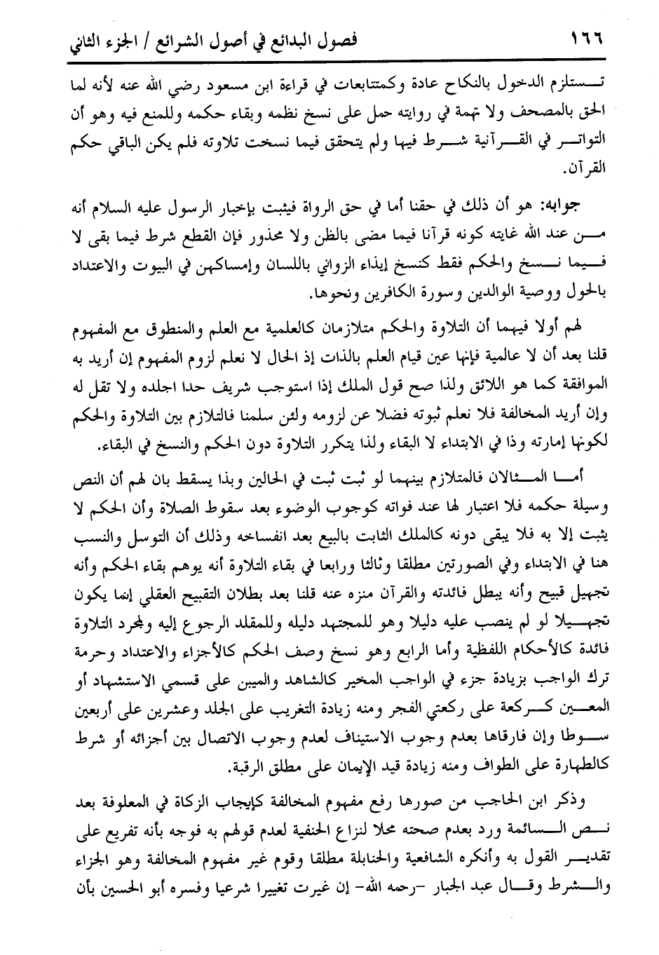 لهم أولا فيهما أن التلاوة والحكم متلازمان كالعلمية مع العلم والمنطوق مع المفهوم قلنا بعد أن لا عالمية فإنها عين قيام العلم بالذات إذ الحال لا نعلم لزوم المفهوم إن أريد به الموافقة كما هو اللائق ولذا صح قول الملك إذا استوجب شريف حدا اجلده ولا تقل له وإن أريد المخالفة فلا نعلم ثبوته فضلا عن لزومه ولئن سلمنا فالتلازم بين التلاوة والحكم لكونهما إمارته وذا في الابتداء لا البقاء ولذا يتكرر التلاوة دون الحكم والنسخ في البقاء.