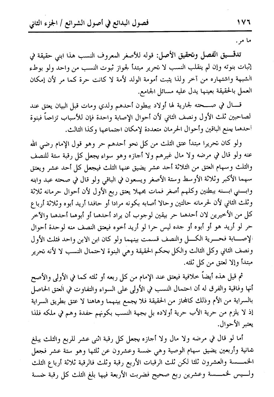 قال في صحته لجارية لها أولاد ببطون أحدهم ولدي ومات قبل البيان يعتق عند لصاحبين ثلث الأول ونصف الثاني لأن أحوال الإصابة واحدة فإن للأسباب تزاحمًا فبنوة أحدهما يمنع الباقين وأحوال الحرمان متعددة لإمكان اجتماعها وكذا الثالث.