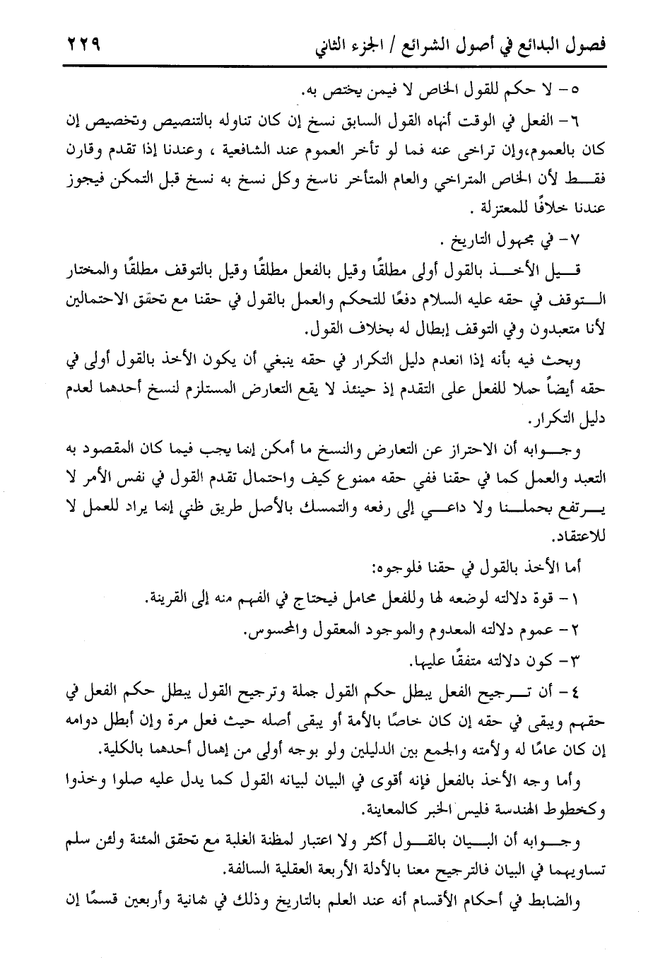 4 - أن ترجيح الفعل يبطل حكم القول جملة وترجيح القول يبطل حكم الفعل في حقهم ويبقى في حقه إن كان خاصًا بالأمة أو يبقى أصله حيث فعل مرة وإن أبطل دوامه إن كان عامًا له ولأمته والجمع بين الدليلين ولو بوجه أولى من إهمال أحدهما بالكلية.