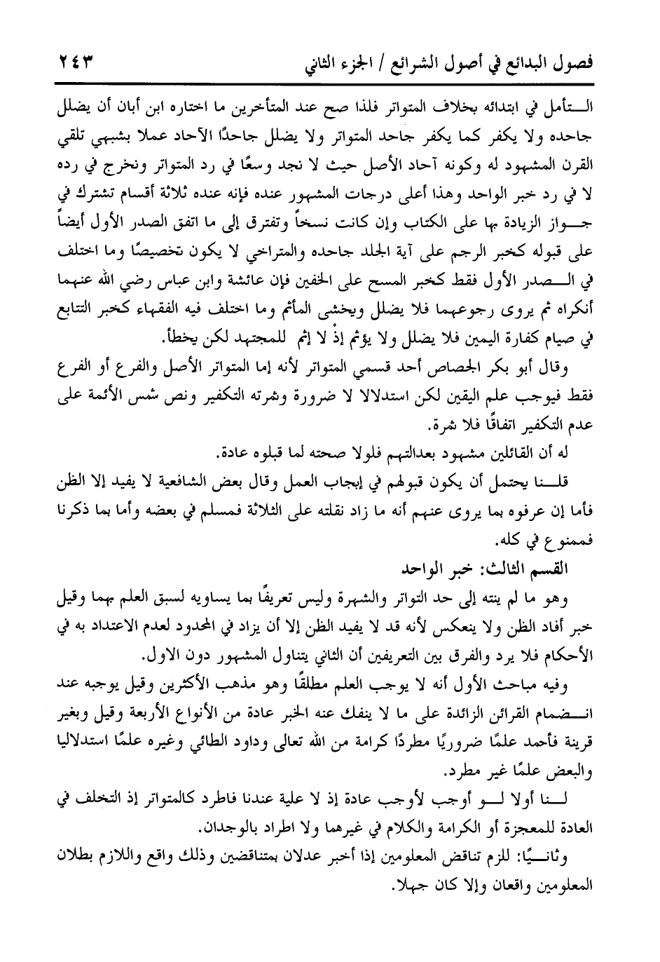 القسم الثالث: خبر الواحد