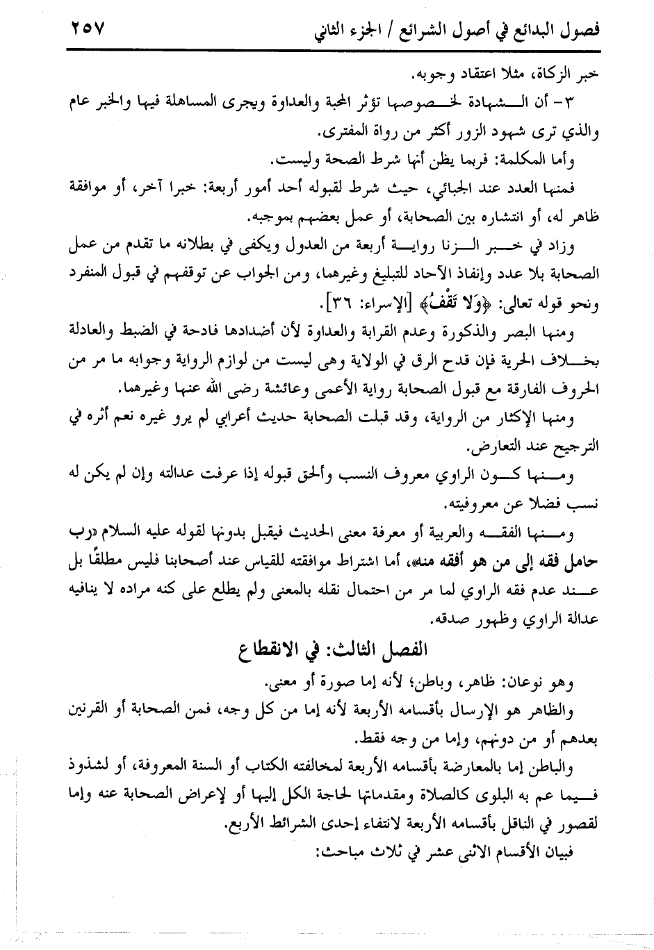 الفصل الثالث: في الانقطاع