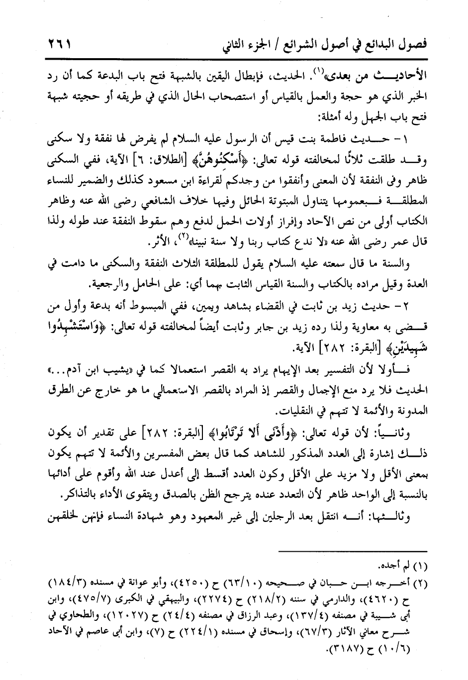 2 - حديث زيد بن ثابت في القضاء بشاهد ويمين، ففط المبسوط أنه بدعة وأول من قضى به معاوية ولذا رده زيد بن جابر وثابت أيضًا لمخالفته قوله تعالى: {وَاسْتَشْهِدُوا شَهِيدَيْنِ} [البقرة: 282] الآية.